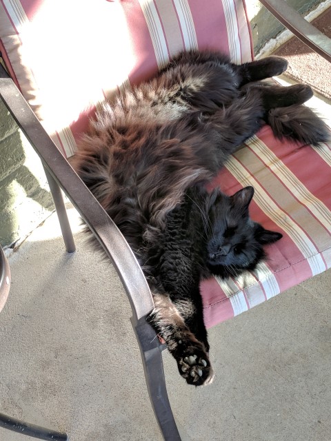 | She opened her eyes in bare slits to look at me and acknowledge that I was there, and then go back to sleep! |
