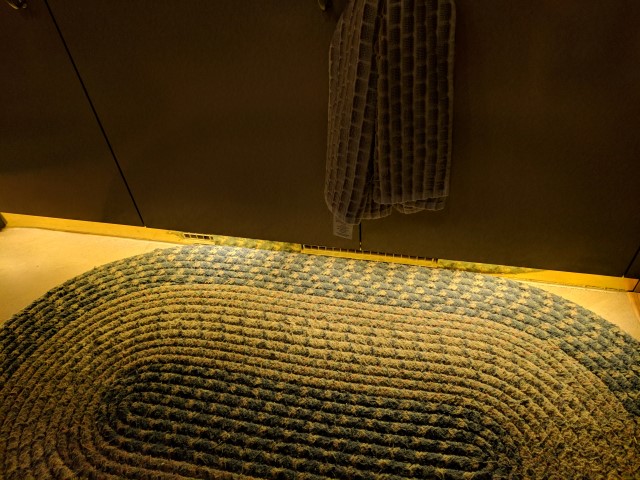 I think you can particularly see with this lighting in the bedroom that if it was higher up (under the countertops in the main part of the bathroom) it would probably be disruptive for sleeping. Under the cabinets in the kitchen, and as low as it is under the bed, and in the toilet area where it is under the countertop but not a room open to the rest of the bus, it is not proving to be a problem.